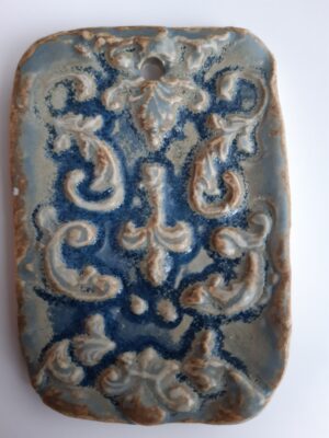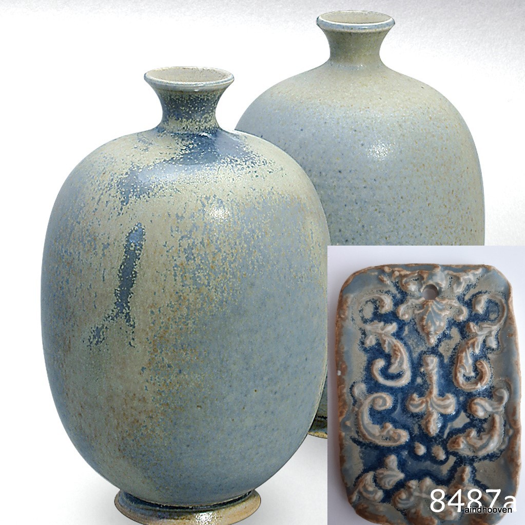 Õhemas kihis matt kollakashall glasuur. Paksemas kihis tuleb pinnale sinakas efekt.