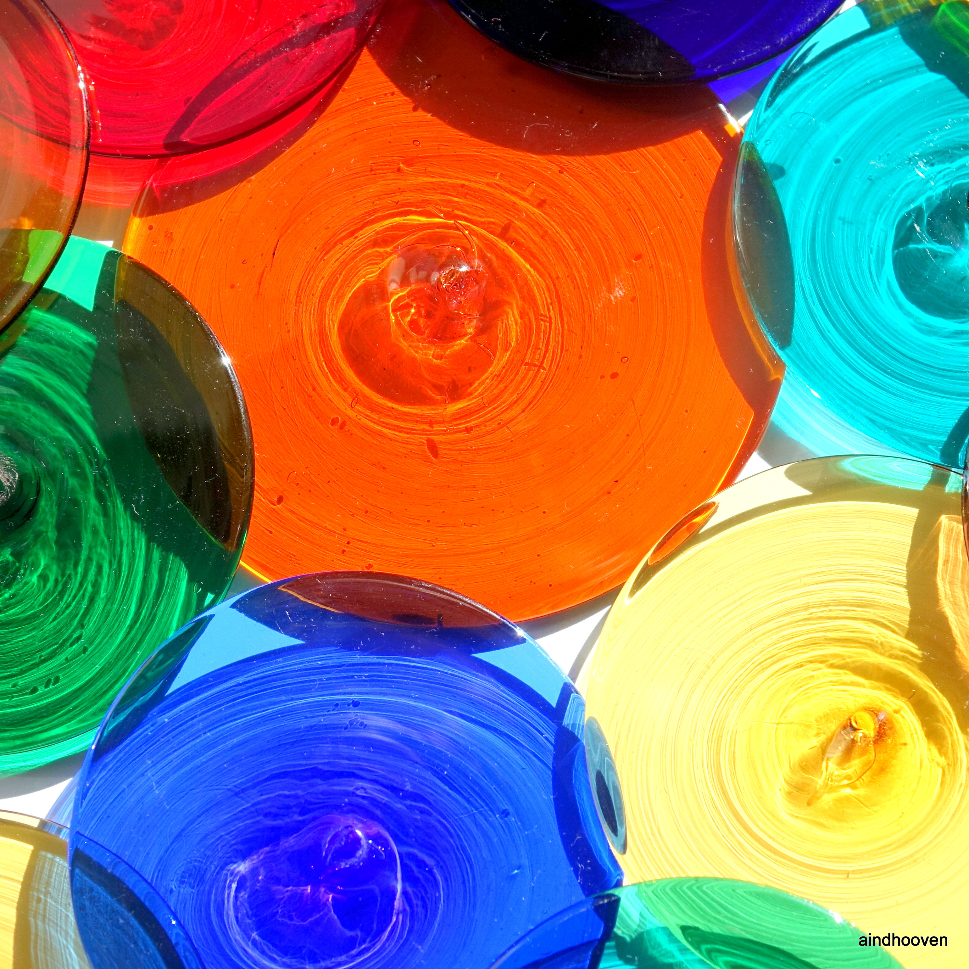 Käsitsi puhutud klaasist detailid vitraažide valmistamiseks. Läbimõõt 6cm.