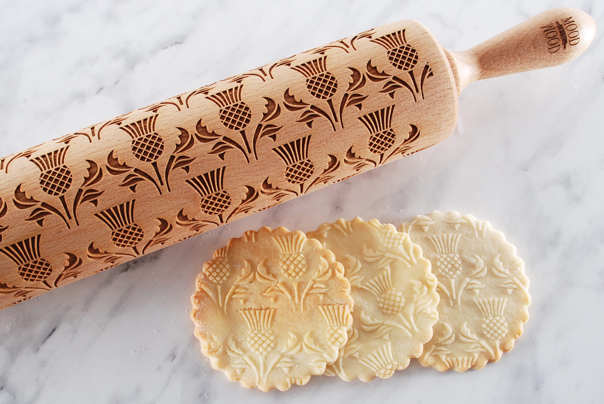 Lasergraveeritud mustrirull on valmistatud pöögipuust. Sellel on optimaalne graveerimissügavus, et saada parimaid mustritulemusi taignal ja savil. Iga rull on kaetud õliga, mis on lubatud ka toiduga otseselt kokku puutuda. See kaitseb puitu ja lihtsustab mustrite pealekandmist.